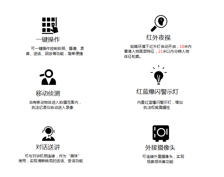 千亿国际DSJ-200F 执法仪(法院/政府/城管)拍摄像素高达5000万,广角镜头137,拍摄画面精细而全面,大容量电池支持陆续在工作12小时不断电